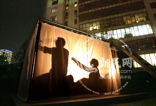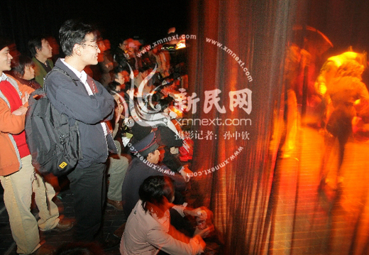 隔着纱幕,观众们看得入神