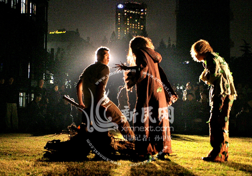 观众普遍对这出《培尔金特》兴致盎然。即便是上戏学生也感觉仿佛在校园里面“寻宝”:“忽然这里冒出个包袱,那里又有什么机关!”还有观众表示:“好像迪斯尼乐园!”不少中年观众一边看戏一边担忧:“噢哟,这样露天跑来跑去要感冒的哎!”(朱光/文 孙中钦/摄)