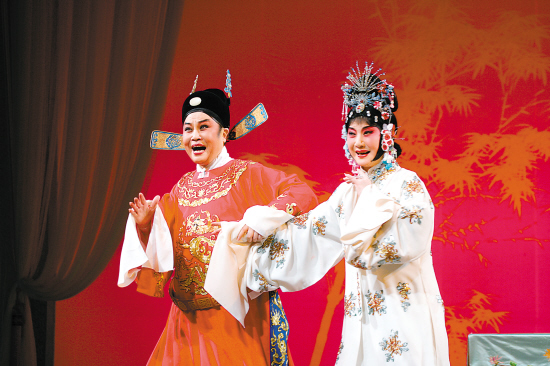 裴少俊(岳美缇饰)与夫人李千金(华文漪饰)几经磨难终于团圆。 记者 金定根 摄