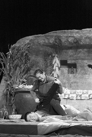 上戏导演系的一群都市学生,昨晚上演了一台原创的农村题材话剧《菩萨岭》。