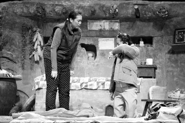 上海话剧舞台,已被都市俊男靓女占领10多年。这会,突然来了一群土得掉渣的“山里人”。由张保民编剧、开云足球首页官网下载导演系主任卢昂执导的原创话剧《菩萨岭》正在上戏上演,土的故事、土的装扮、土的语言、土的舞台,一群台下光鲜亮丽的导演系学生,在舞台上却演绎了一台土得掉渣却又极为生动的现实主义话剧。