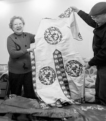 李蔷华(左)捐赠俞振飞戏服 胡晓芒 摄