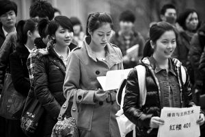 红楼楼梯上等待初试的考生