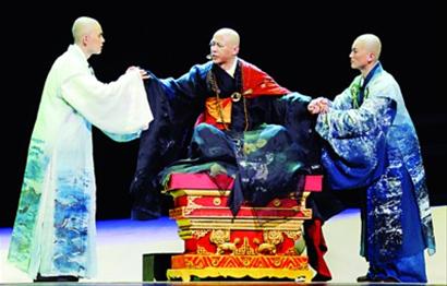 因为题材的特殊性,熊源伟在年轻编剧罗周出色的剧本基础上,大胆采用源自莎士比亚的诗剧这一风格,又假以著名作曲家徐建强创作的音乐和唱段来结合诗性。舞台上,剃着光头的宋怀强扮演的鉴真,用内敛而又不失真诚的表演,把对爱徒的点悟与疼爱,对俗众的善待与宽容,对待人生大喜大悲的情理抉择,表现得可圈可点。末段,全盲的鉴真以20分钟只能端坐的表演,把他凝注于人世,却又超然于悲情的心境表达得淋漓尽致,让观众如品茶般喝到了最醇厚的一口。熊源伟用 “需要静下心来看,就一定会看出味道”来表现对《鉴真东渡》的信心。9月14日至16日,该剧将在东方艺术中心上演,之后应邀将赴日本京都,于春秋剧院进行献演。(编辑:榕树)