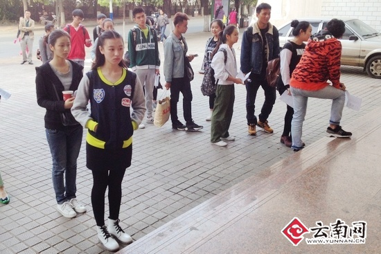 上戏云南考点艺考场外候考的部分考生