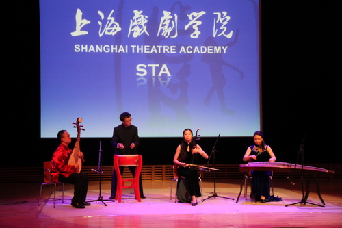 演员们在进行民乐合奏《夜深沉》
