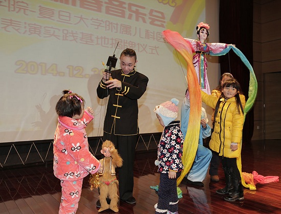当天的“儿科医院2015儿童新春音乐会”上,上戏的同学们除了带来木偶剧《驯猴》、《长绸舞》之外,还带来了民乐小合奏、国标舞、经典音乐剧片段等节目。此外,还有10名在“2014打针我们不怕”活动中表现勇敢的小朋友,获得“勇敢小龙人”奖。
