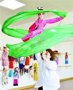 图为单姝妍在练功房排演长绸舞。徐瑞哲 摄