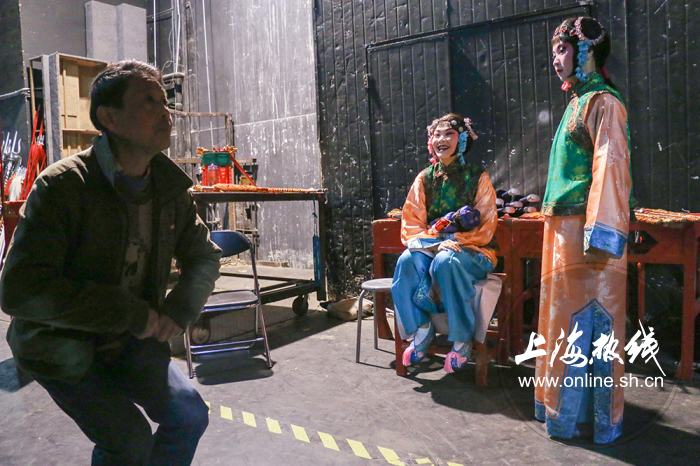 图:12月10日《四郎探母》演出前,演员们正在后台排练