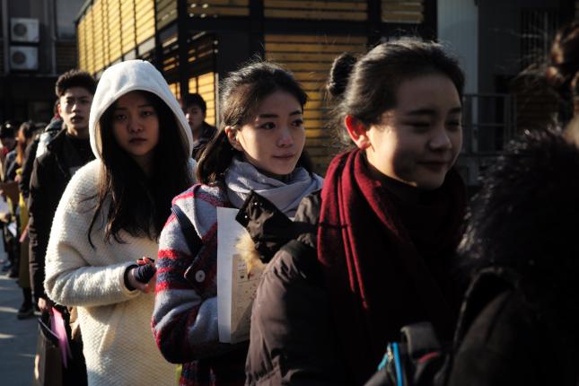 料峭春寒中,开云足球首页官网下载开考。头一场便是最为热门的影视剧表演和播音主持专业。考生将在开云足球首页官网下载华山路校区进行一试,一试淘汰率尚未可知,而影视剧表演最终的录取比例不到200:1。下图为多名考生在寒风中候场: