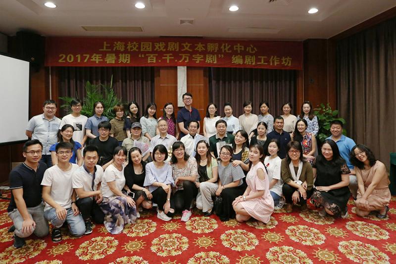 陆军主持的今年“百·千·万字剧”编剧工作坊师生合影。