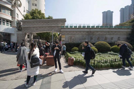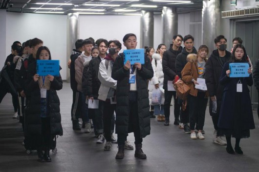 根据专业不同,在考务的带领下考生分流走向自己的考场。