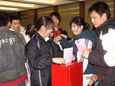此次竞选大会共有学生候选人13名,各位候选人各自发表了1分半钟的演讲,在最短的时间内展示了导演系学生骨干的良好风貌,并表达了他们要为集体服务的强烈愿望。随后各位同学进行无记名投票并当场唱票。最后产生了9名团总支及学生会干部。