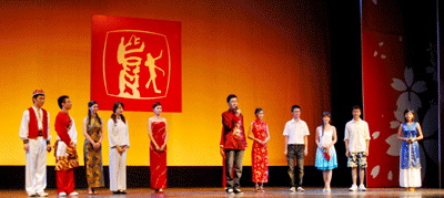 晚会首先体现的是中国的民族文化——戏曲串烧,我们的戏曲演员们真可谓是功夫不浅,不论是长水袖还是变脸,都引得台下的掌声阵阵;随之而来的是一段现代舞表演,动感的节奏,使得台下的同学们都跃跃欲试的在舞动,她们用肢体的语言大声宣言,我们年轻,我们青春!