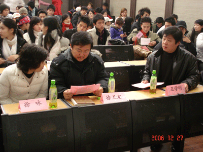 2006年12月27日晚上18:15分,表演系第一届团总支与学生会选举大会在红楼209室顺利召开。共有105名同学参与了此次选举,为保证大会公正性,会议主持人、监票人均由毕业班同学担任。会上,16名由各班推选出来的候选人先后上台进行两分钟的演讲,或激情满怀、或踌躇满志,表达了他们愿为表演系学生工作贡献力量的决心与信心。整个选举大会高潮迭起,台上台下互动频繁,同学之间情意融融。竞选演说完毕后,与会的同学认真地投出神圣的一票,选出自己心目中的团总支及学生会委员。