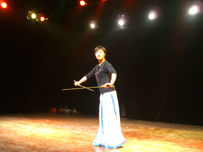 轻松过后,音乐总是能把大家的情绪平复下来。而悠扬的笛声飘过耳际,之后上体的西洋剑术《利刃》、街头足球又是如火一般燃烧了全场的气氛。在严肃的剑术表演之中还穿插了点特别的小剧情,给了大家一个小惊喜。