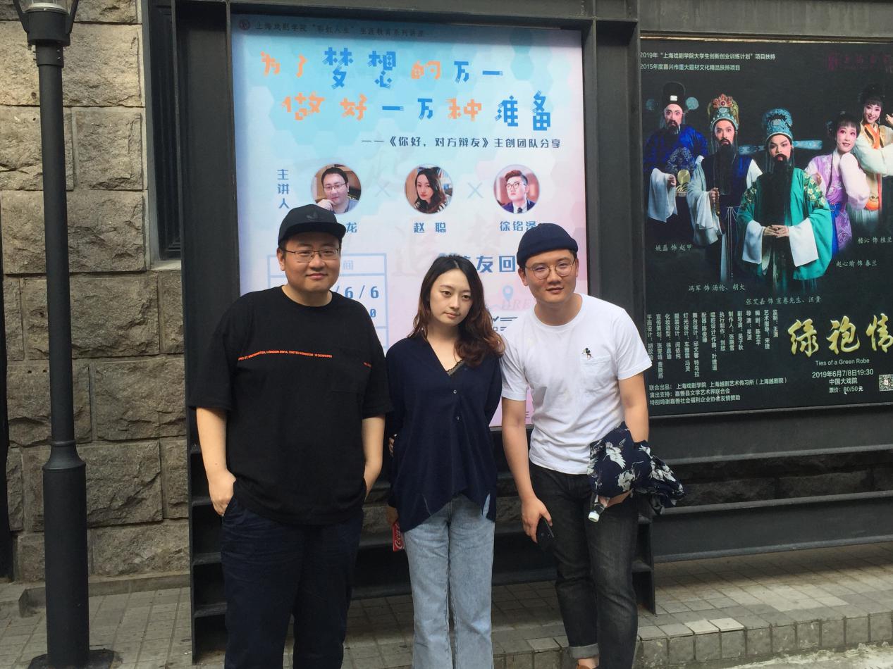 2019年6月6日下午,我校MFA校友王士龙、赵聪及MFA在读的徐铭泽,作为豆瓣高分青春剧《你好,对方辩友》的主创团队,在红楼209教室为同学们带来了主题为“为了梦想的万一,做好一万种准备”的分享会。