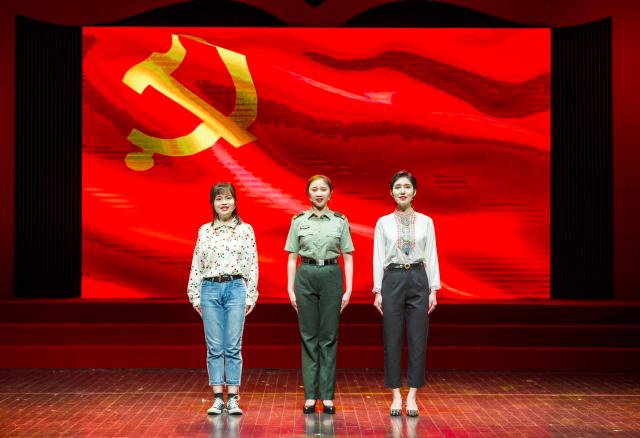 在庄严的国歌声中,本次主题活动拉开序幕。开场舞蹈《红》将观众带入极具仪式感的氛围当中,让人们仿佛触摸到一百年前那个救亡图存的时代。主题活动分为“追寻初心故事”、“践行文艺宗旨”、“坚定理想信念”三个篇章,由师生共同作为串讲人,以诗化的语言,将各个篇章进行有机串联,使整场活动更具戏剧性、沉浸式的思想教育效果。