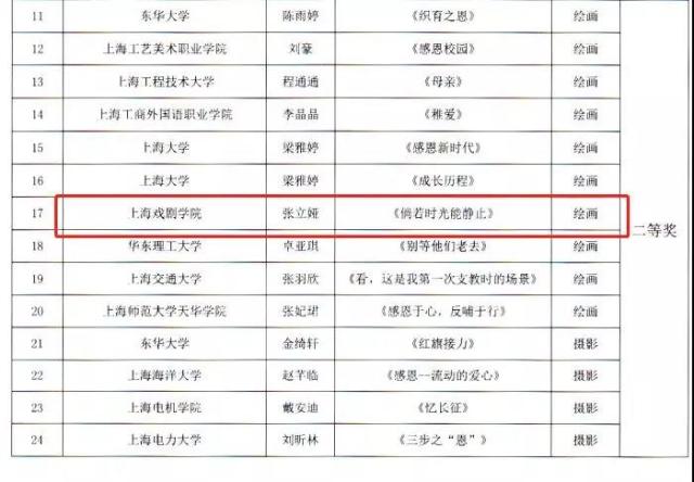 热烈祝贺我校两位同学在2018年“感恩于心,反哺于行”上海市高校学生资助育人摄影、绘画大赛中获奖!2018级影视摄影与制作 羊昊天摄影作品《献花女孩》2016级灯光设计 张立娅绘画作品《倘若时光能静止》