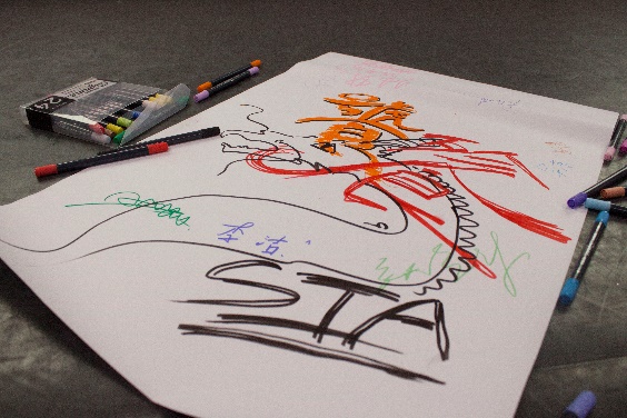 按“上”“戏”口号分组,“上”为一组,“戏”为一组。需要在5分钟内,选好:队长,队名,队形,队徽以及口号。分组进行展示。这一过程,需要每组同学合理分工,集思广益。