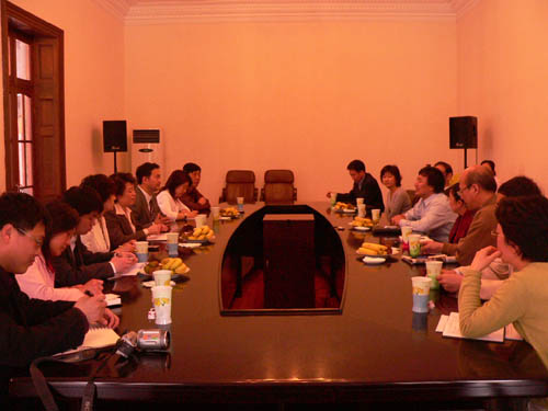 韩生副院长首先向中戏的客人介绍了我院近年来的发展情况,随后吴爱丽老师从依靠评估院专家、评估材料的整理、教学的梳理、教学管理的梳理、细节决定成败、数据统计的口径等六个方面介绍了我院评估办工作至今的一些经验、教训与体会。