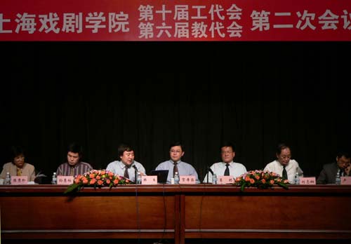 贺寿昌同志代表党委在会上发表了重要讲话。首先,他对会议的成功举行以及代表们对学院发展的热情关心和积极参与表示衷心的感谢。贺寿昌同志指出,通过“十一五”纲要,这是上戏发展的大事;而落实纲要提出的各项任务则更为重要。贺寿昌同志强调,在纲要的指引下,我们今年首要的任务就是完成迎评工作,这是我院师生员工落实纲要任务的一个最直接、最有力的抓手。贺寿昌同志进一步指出,在贯彻落实“十一五”规划纲要中,人才工作已成为一个重要的战略任务摆在我们面前。上戏现在出现的一切可喜变化,原因之一就是人才工作的支撑。学院拉长教学链、建立三个基地、启动高地建设各类项目、把教授聘任变课时制为任务制、“223”计划、霞光工程、选苗工程的正常实施,对优秀人才采用宣传、使用的新机制等等,都是人才工作兴旺发达的反映。贺寿昌同志还在会上严厉批评了在人才问题上的一些不良现象,要求各位师生员工、特别是各级干部都要有不拘一格降人才的气魄,站在戏剧事业发展的高度重视和做好人才工作。贺寿昌同志专门表扬了在学院发展中一些工作出色的同志,号召大家向他们学习,弘扬积极投身学院发展的进取精神。