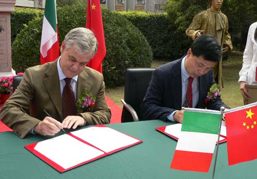 我院副院长孙惠柱与意大利欧洲剧院总经理埃斯科巴尔先生签订合作协议