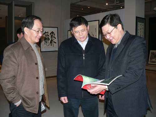 韩永进司长(中)在尖子人才推荐中心观看我院尖子人才画册