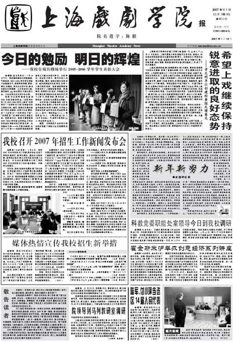 为了适应学校改革进一步深化的形势,院报编辑部经过研究并报党委批准,决定从2007年第一期起,报纸的版面由原来的四开四版变成对开四版。我们要继续发扬院报的优良传统,保持原有的风格,同时各个版面内容有所侧重,一版为学校重要新闻,二版为一般新闻,三版为学术、理论和演出、外事新闻,四版为副刊,主要反映学生和老同志活动的内容。每个版面相应增加《党的建设》、《文明单位创建》、《学科建设》、《教学督导》、《人才队伍》、《教授论坛》、《辅导员手记》、《霞光工程》、《后勤基建》等栏目。