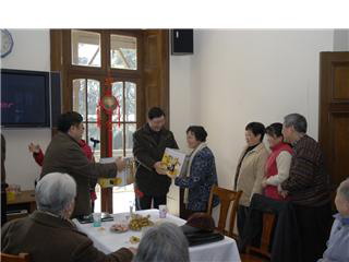 在新春佳节到来之际,我校举行了一系列慰问、团拜活动。继2月3日退休老同志团拜活动之后,今天中午,学校又在老干部活动室举行2007年离休老同志团拜活动。贺寿昌、韩生等学校领导出席了活动。在团拜会上,贺寿昌书记和主持工作的韩生副院长先后发表讲话。他们首先代表学校向常年来给予学校工作巨大支持和无私奉献的老同志表示衷心的感谢!在回顾了06年的工作并且展望了07年的发展后,他们强调:在新的一年工作中,我们还要继续争取老同志的关心和指导,特别在涉及评估等教学方面的工作,老同志的经验是我们的财富,我们一定要进一步挖掘和提炼好。最后,校领导还向戴平、区景云、韩小梅、洪增霞四位同志颁发了老干部工作奖,感谢他们常年来对老干部工作的关心和努力。