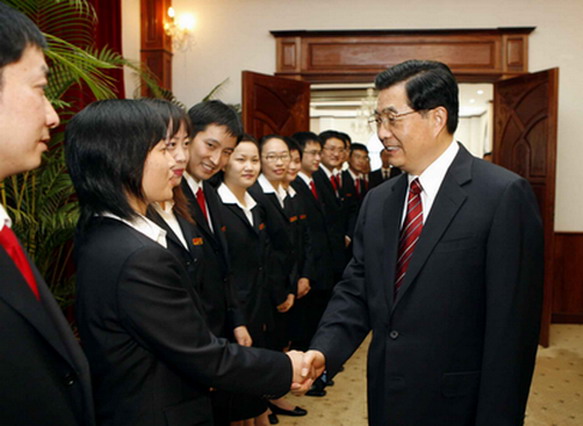 胡锦涛同志会见我校赴老挝志愿者徐莹同志