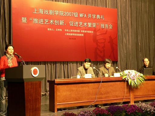 中共上海市委宣传部长王仲伟同志在开学典礼上作了关于“推进艺术创新,促进艺术繁荣”的报告。
