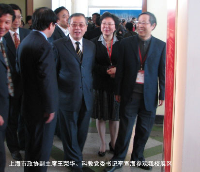 开幕式结束后,市政协副主席王荣华、市科教党委书记李宣海、市教委主任沈晓明等领导同志到我展区参观并给予指导。同时,参展的兄弟院校也到我展区进行了交流。