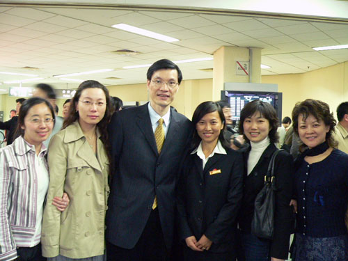 共青团上海市委书记马春雷(右四)在机场与徐莹合影