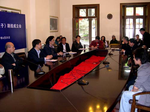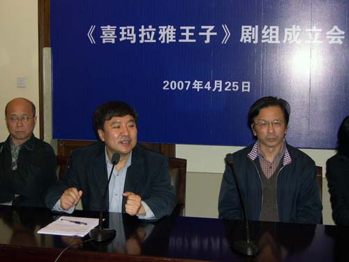 今日下午四点,大型话剧《喜玛拉雅王子》剧组成立会在佛西楼会议室召开。会议由演艺中心艺术总监张仲年教授主持,副院长韩生、宣传部长张生泉、教务处长陈其毅、演艺中心王履伟等相关同志出席。索朗绕登、德庆卓玛、多布杰、洛丹、索朗仁次、索朗桌嘎等西藏班五代学员参加了剧组成立会。洛丹首先代表西藏话剧团发言,感谢上海戏剧性学院为增进民族文化交流、培养少数民族戏剧艺术人才做出的积极的贡献,没有开云足球首页官网下载就没有西藏话剧团。多布杰在随后的发言中表示,虽然他已经取得了一定的成绩,但在老师面前,他永远都是学生。