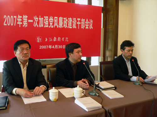 2007年4月30日下午1:30,我校2007年度第一次加强党风廉政工作干部会议在佛西楼老干部活动室召开。院领导贺寿昌、葛朗、韩生、刘志钢出席了会议,全院处以上干部和部分正科干部参加了会议,会议由副院长韩生主持。