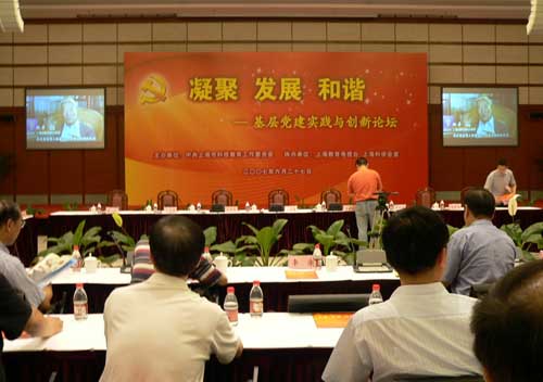 6月27日下午2:00,《凝聚 发展 和谐――基层党建实践与创新论坛》在市科学会堂国际会议厅召开。市科教党委书记李宣海、市科教党委副书记翁铁慧等市科教党委领导出席论坛。来自市科教党委系统的基层党建负责人约400余人参加了论坛。论坛由市科教党委副书记李铭俊主持。