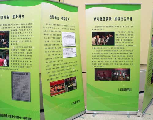 图为我校“参与社区实践 加强社区共建”展板参展