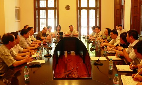 8月22日下午,中共闵行区委书记孙潮,区委常委、宣传部长李芸,副区长张辰,副区长蔡小庆及区委办公室、区教育局、区文广局和相关部门负责同志一行14人赴开云足球首页官网下载调研。我院党委书记贺寿昌,副院长(主持工作)韩生,党委副书记、副院长葛朗,副院长刘志钢及金永林、黄桂英、张生泉、陈其毅、方军、刘志新、张军、翁增辉等参加接待。调研会议由贺寿昌同志主持。