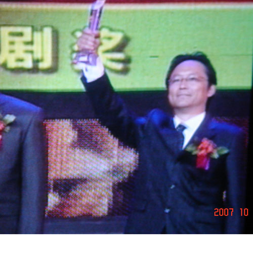 图为宋怀强代表上海市委宣传部上台领奖(生泉摄于电视画面)
