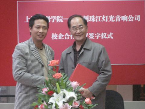 图为副院长刘志钢与广州珠江灯光音响事业有限公司有关负责人在签约仪式上