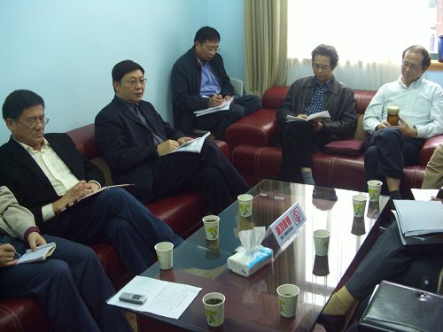 10月31日5点,虽然一天的调研已经非常辛苦,夜色降临,下班的时间已到。但是,领导还是和早已经守侯在外面的电视艺术学院同志进行了交流。主持工作的副院长赵韫颖、书记姚扣根以及宋怀强、吴保和等老师汇报了学院改革的新动态。特别是作为学校科研处处长兼任书记的姚老师认为,我校已经有了戏剧戏曲学的一级学科,应该在广播影视方面再下决心,争取早日获得一级学科。这样,对我们学校整体水平有大的提高。领导们对此表示肯定,认为我们应该对发展的目标要心中有数,咬住青山不动摇。