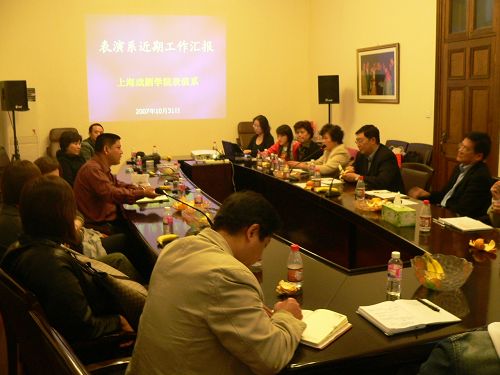 10月31日下午3点半,党委领导一行听取了表演系书记张生泉、主任龙俊杰、副书记王学明以及张晓明、洪彬、钱正、王苏等老师的汇报。领导对该系能够抓制度建设、学风建设、搞好凝聚力工程的做法表示满意,认为系领导班子真抓实干,为学校发展作出了贡献,同时对系领导提出的一些要求,表示回去研究,尽量给大家满意的答复。