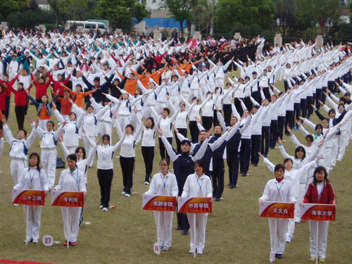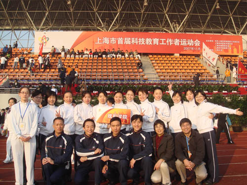 由上海市科教党委主办上海市科教工会承办的首届科技教育工作者运动会于11月3日在上海大学举行。来自全市科教系统104家单位,近万名科教工作者参加了开幕式的大型群众体育展示和文艺体育表演。我校由党委副书记葛朗为团长的代表团参加了开幕式广播操展示,附属舞蹈学校的师生参加开幕式文艺体育表演。