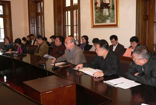 9日下午,党委领导先后听取了教务处长陈其毅、人事处副处长张瑾、科研处长姚扣根、财务处副处长陈方、演艺中心主任王履玮和副主任张军的工作汇报。党委领导希望教务处在学校发展的创新方面想得再深一些、做得再实一点、调整得再完善一点;希望人事部门在机构、人员等设置和资源的更合理配制方面加强研究;希望科研在已经有所突破的基础上进一步把教师科研的积极性和教学的积极性统一起来;希望财务在预赛的编制、执行和调控等方面还要进行研究,提高服务水平和管理能力;希望演艺中心一要把教学演出和商业演出的关系处理好,二要把出人出戏的目标牢记,三要完善财务等管理制度、杜绝漏洞。