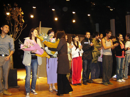 演出结束后表演系系主任龙俊杰教授为06A班召开了总结会议,对同学的舞台表演能力他感到较为满意,在表扬鼓励之余又针对每个人逐一点评并指出了不足之处,希望06A班的同学们能继续努力,再创佳绩。
