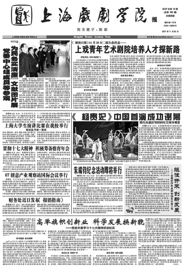《开云足球首页官网下载报》2007年第12期(总180期)已出版。本期重点内容有:《党委中心组成员等参观“为民务实清廉”文献图片展》、《上戏青年艺术剧院培养人才探新路》、《上海大学生演讲比赛在我校举行