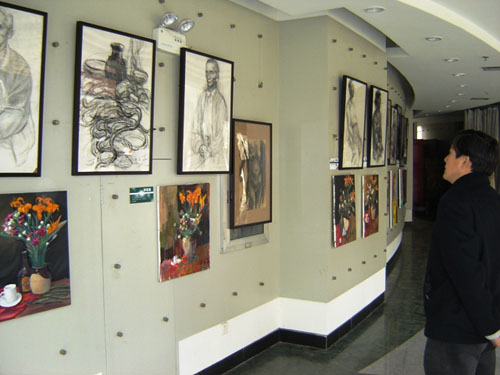 今日早晨10:30分,创意学院07视觉传达班的同学在端钧剧场外展厅看办了“Feeling”学生作品展,副院长韩生以及创意学院院长孙福良等领导出席了开幕仪式。本次展览一共展出画作50多幅,以油画和真人写生为主。视觉传达15位同学平均每人都有3到4幅作品展出。