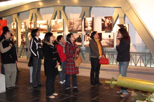 走出烈士陵园,一行人乘车赶往淞沪抗战纪念馆。抗日战争,这场给中华民族和日本人民带来沉重灾难和伤痕的战争已经过去62年了,但中国人民不能忘,共产党员不敢忘。唯有纪念那些为保卫祖国,保卫上海的革命志士和热血儿女,才能让我们更加体会和平的珍贵,更加体会建设和谐世界的必要。我们应尊重历史,牢记这沉重的记忆;但我们也面向未来,发展和谐互信的中日关系。“你不说,我不忘”。我们怀念为国捐躯的烈士,就是为了在这和平年代,重温那段沉重的历史,寻找我们建设中国发展上海的情感动力。