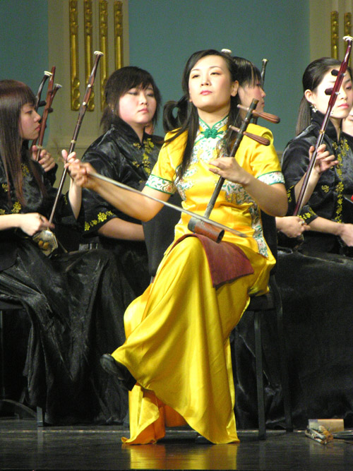 昨晚的音乐会上,民乐团除了表演民乐合奏《庆典序曲》、二胡独奏《苗岭早春》等传统民乐作品外,还特意集中表演了一批从戏曲作品改编而来的音乐作品。演出以一曲《夜深沉》收尾,现场气氛也达到高潮,一些观众似乎忘了这是一场音乐会,而是像看京剧一样地叫起好来。(原载《新民晚报》 2008-01-18 A18版)